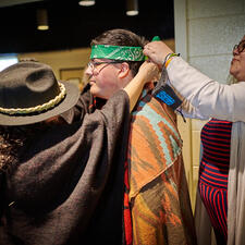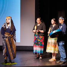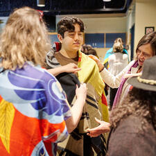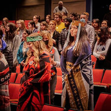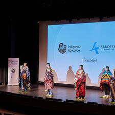 On April 27, 2022, at Abbotsford Arts Centre, the Mamele’awt Community Indigenous Education Centre honoured the 2022 Indigenous Role Models. Before entering, Role Models were covered with a blanket as a way of claiming the students, giving them a warm hug, and helping them on their journey forward, along with a headband to remind them to have good thoughts and a good mind. Chris Silver, Councillor of Semá:th First Nation began the Ceremony with a welcoming song and explained the importance of the Ceremony. Mr. Perry Smith, Director of Curriculum, was the traditional speaker and further explained the meaning of the day and how protocols are in place to ensure the Ceremony is done well, with a good heart and a good mind. Students were brought in by Tyrone Thomas, Jessi Old Coyote, and Tlatsemot leading in an honouring song as the students were brought forward into the space. Each student was honoured on stage by either their Indigenous Support Worker or Teacher for Indigenous Success, who expressed each student's hard work, dedication to culture, and future goals which brought them to be honoured as Role Models. The day was filled with gratitude and inspiration as we celebrate these students' accomplishments. The Honouring Ceremony was live-streamed and can be viewed on the Abbotsford School District YouTube page.